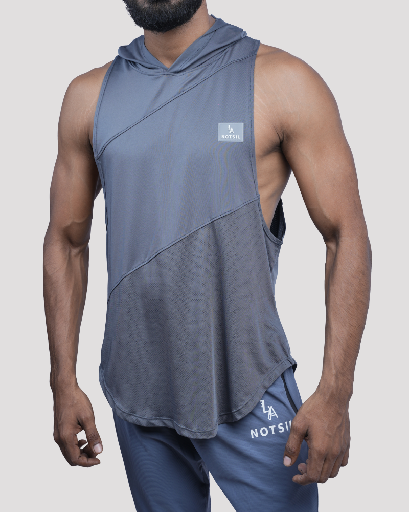 Men’s Grey Chill Fit Hoodie Tank Top, designed for those who seek comfort, style, and functionality in one versatile piece.