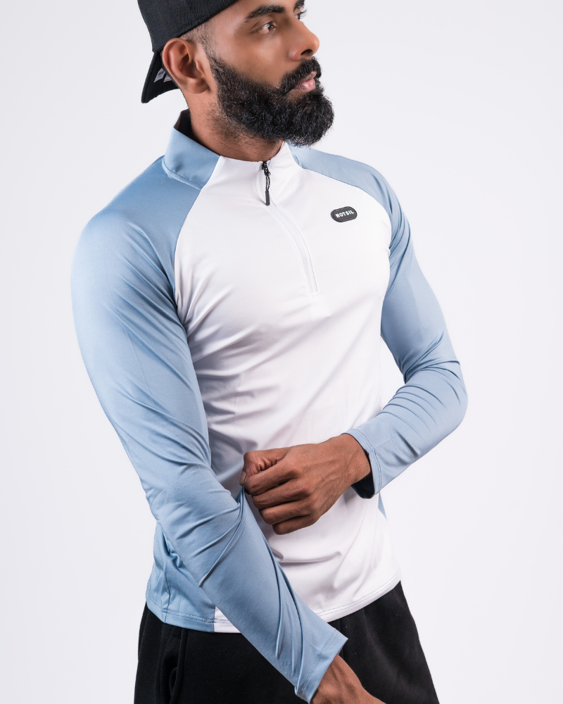 The contrast raglan sleeves enhance mobility while the clean Notsil logo and quarter-zip closure add a refined, sporty edge.