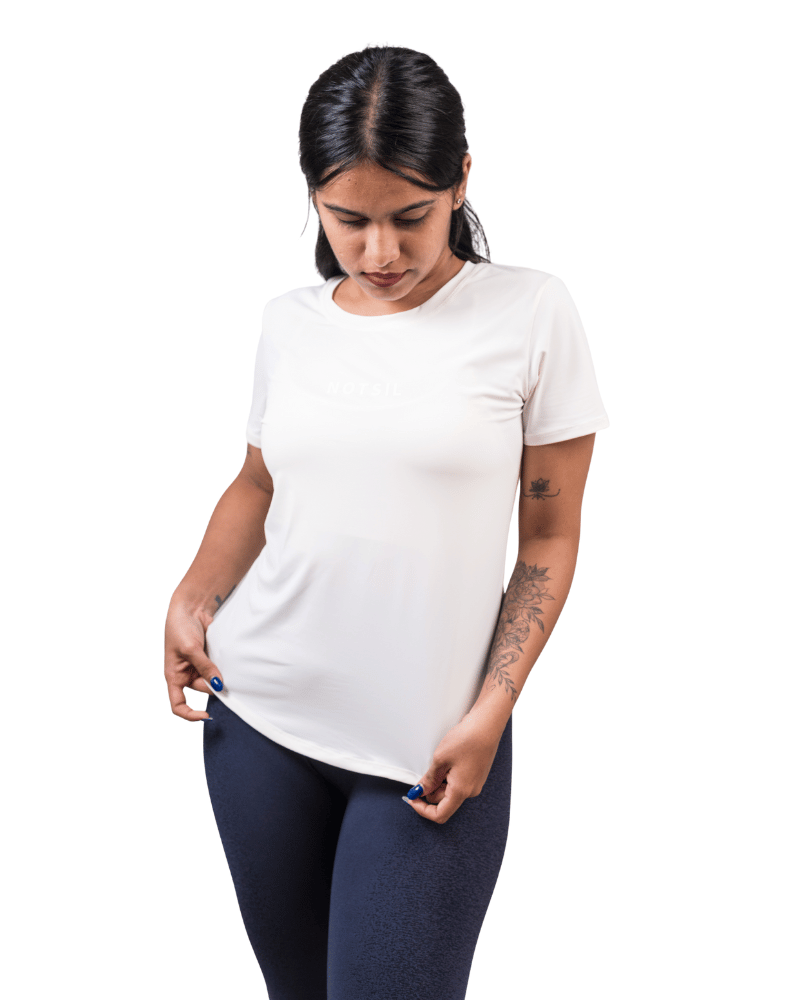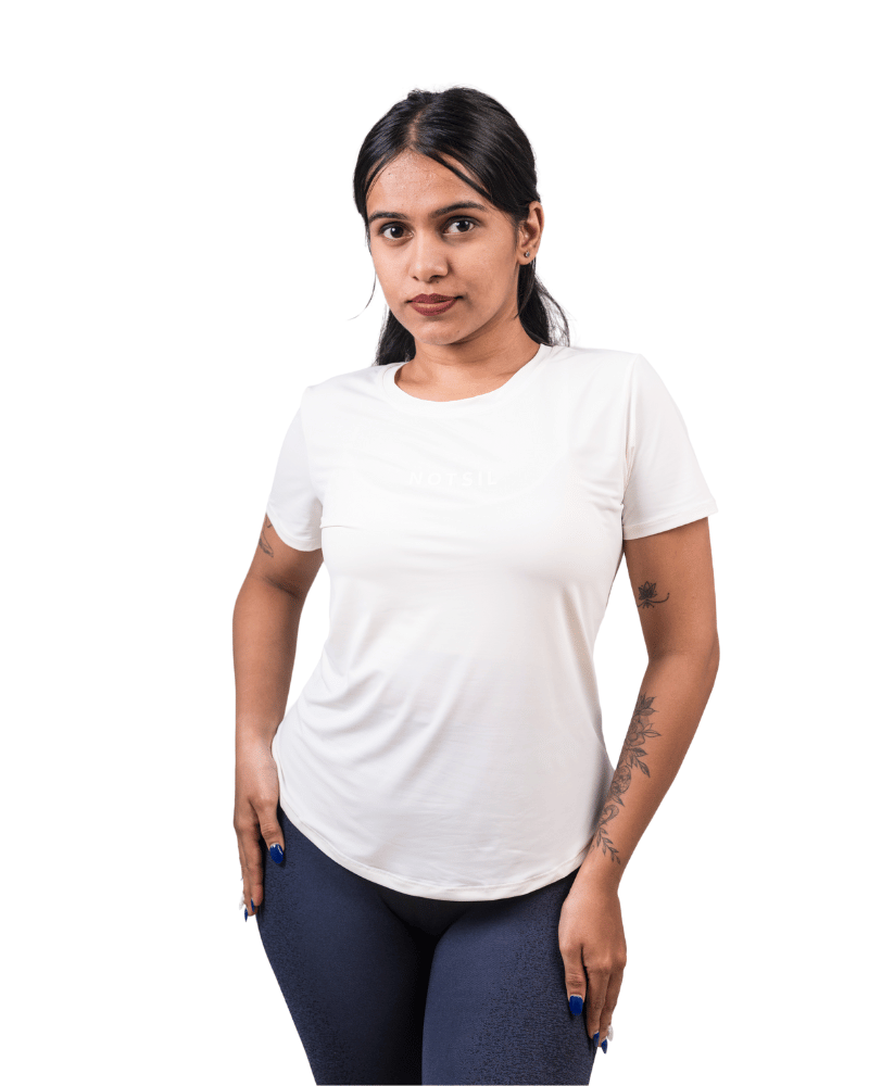 Its classic silhouette offers a relaxed-yet-flattering fit, while the stretchable material allows for easy movement. The minimalist Notsil logo on the chest adds a clean, sporty finish.