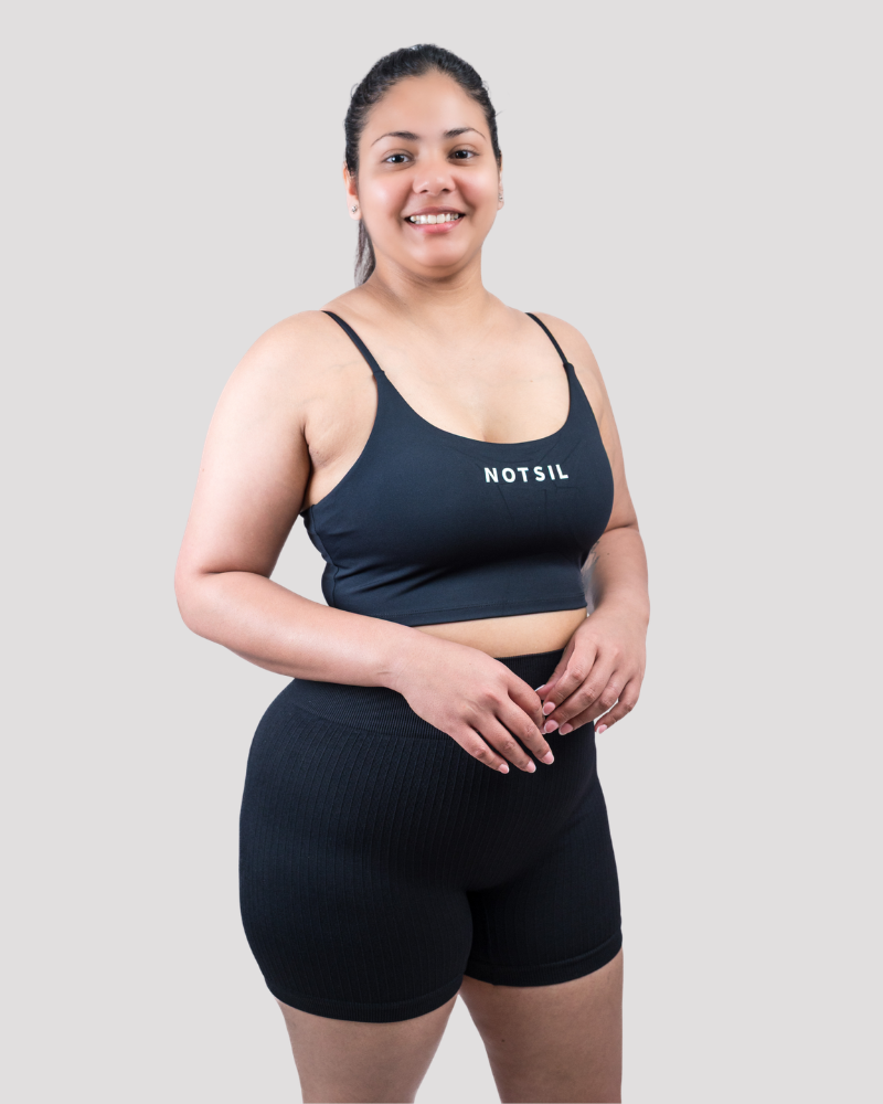 The minimalist design features slim straps, a flattering neckline, and the signature Notsil logo at the front for a modern, clean look. Its supportive band ensures all-day comfort without compromising on style.