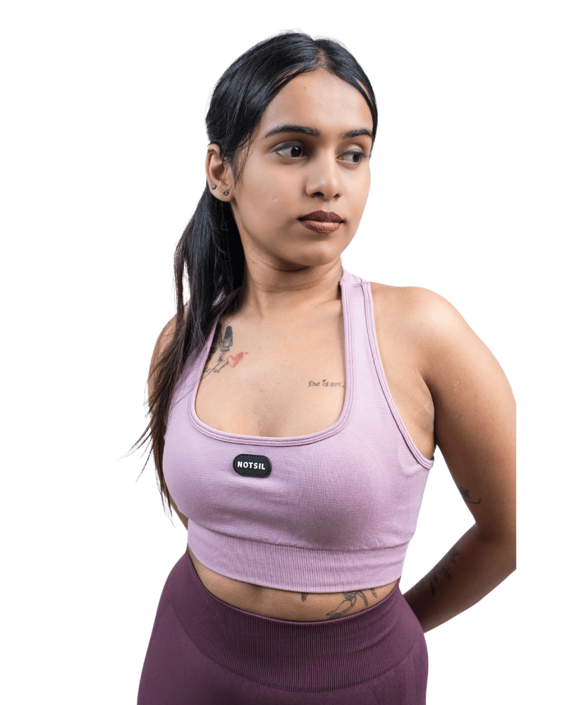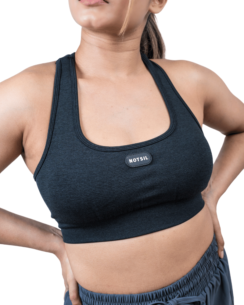 Its racerback design enhances mobility and ventilation, while the wide under band ensures a secure, stay-put fit. Finished with the signature Notsil logo detail on the front, this bra is made to move with you confidently and comfortably.