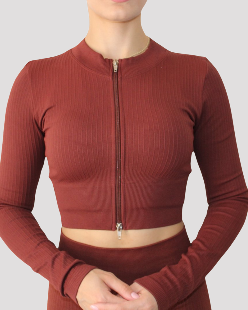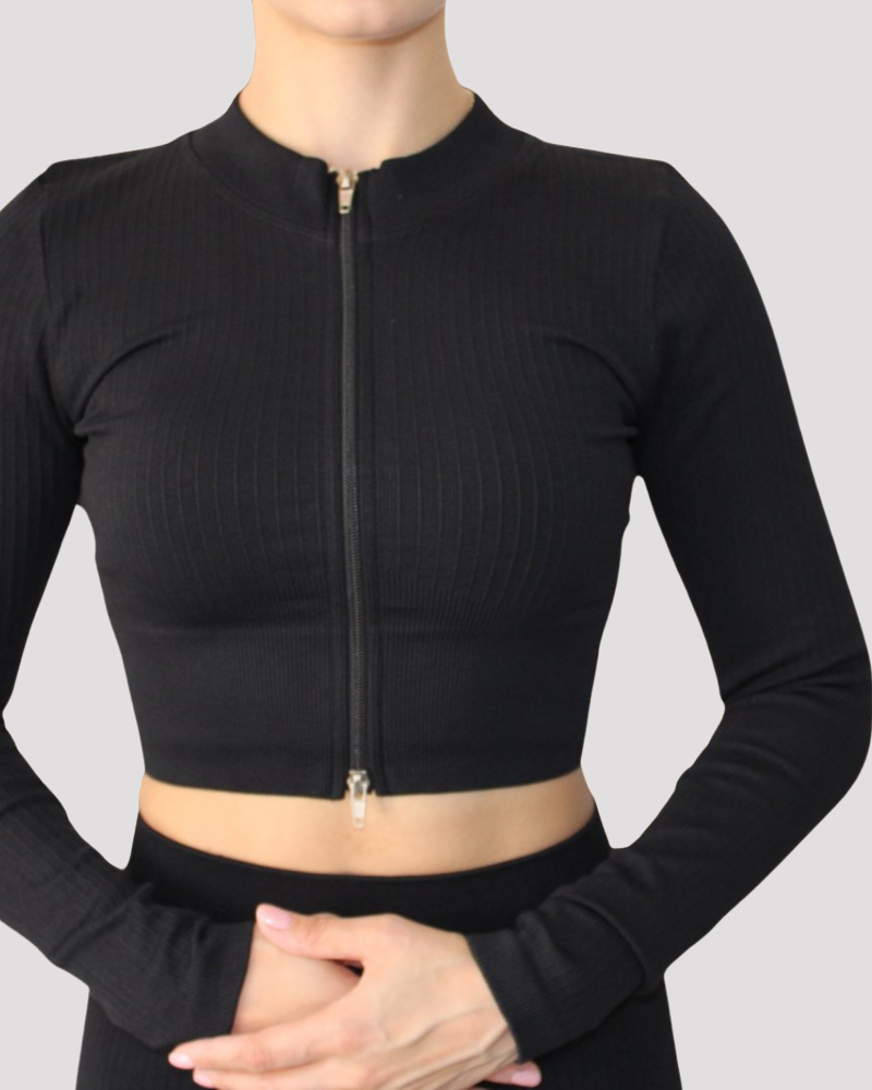 Seamless Crop Zip Long Sleeve Top, a versatile and stylish addition to your wardrobe. This top combines comfort, functionality, and a trendy design to elevate your active and casual wear.